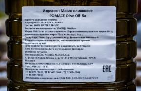 Оливковое масло Casalbert «POMACE» в пластикоых бутылках по 5 л каждая, рафинированное, категория «POMACE»
